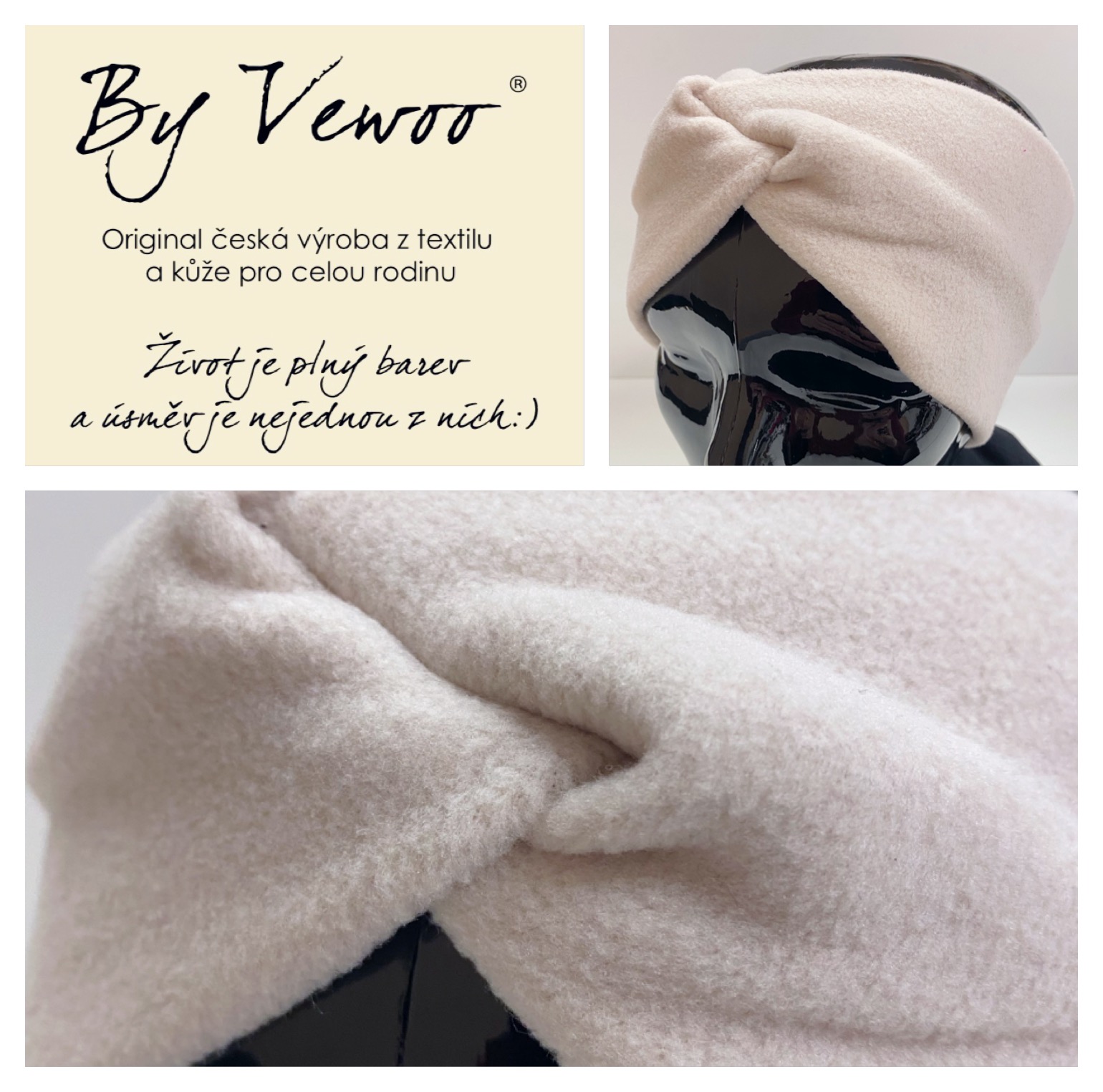 - Čelenka hřejivá "UZLÍK" - microfleece - vel. 52 - 56cm - barva BÉŽOVÁ
