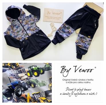 - Rostoucí softshell souprava - softshell silnější zimní- Bunda se stojáčkem a kapsami plus kalhoty - 98/104 vzor Traktory