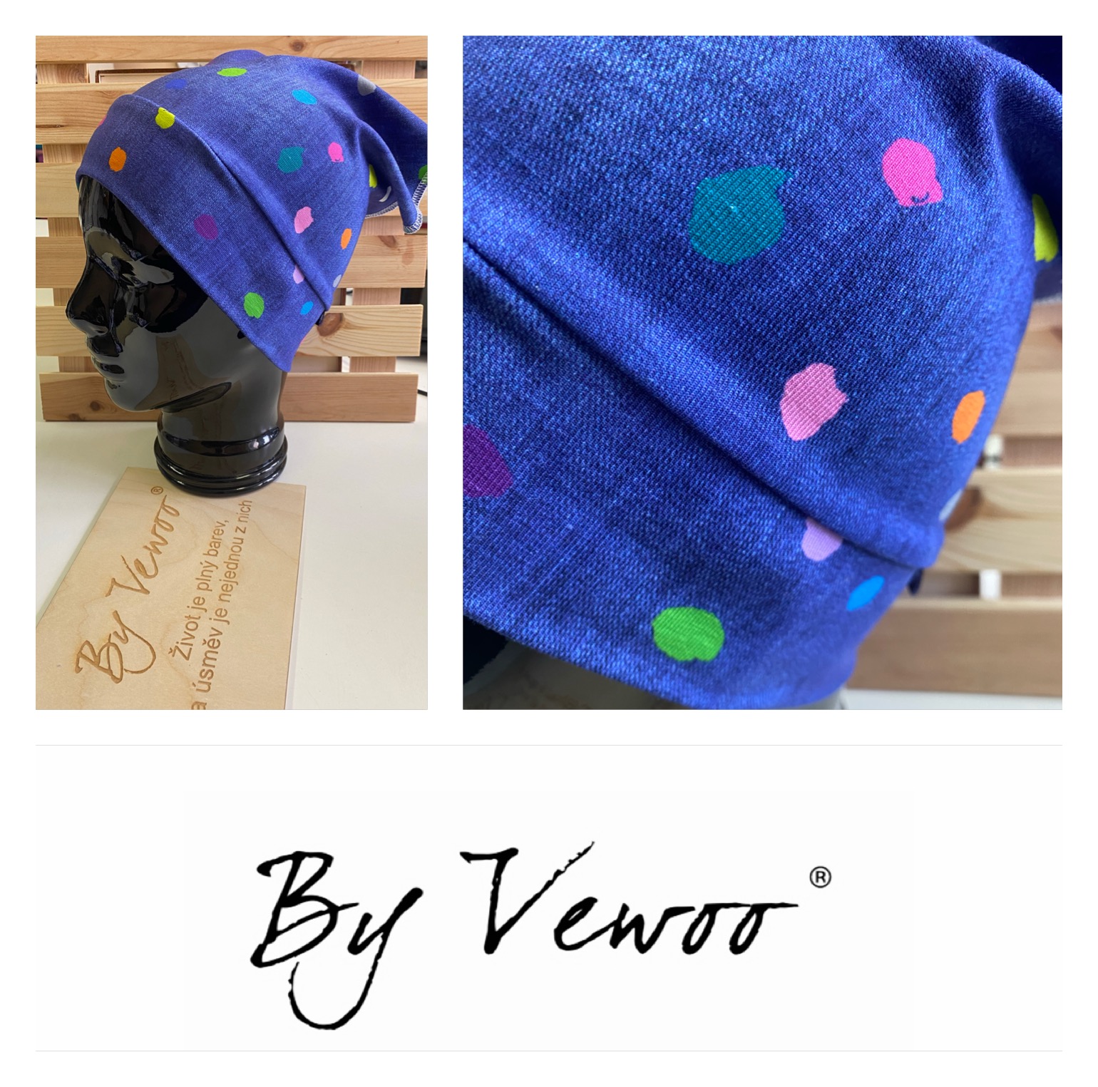 Šátek "Čeltík" - šáteček na JARO/PODZIM/LÉTO - VZOR BAREVNÉ PUNTÍKY NA JEANS - vel.44-48cm a 48-52cm->SKLADEM<- k odeslání ihned 2 ks180 Kč/ ks